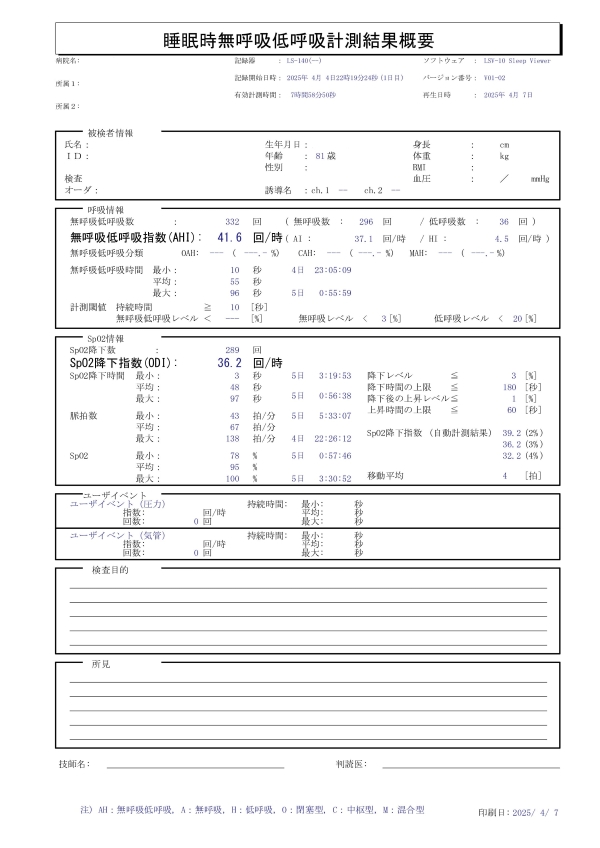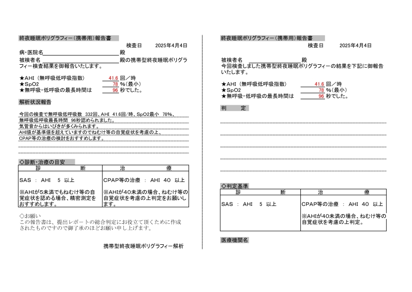 終夜睡眠ポリグラフィー検査の携帯型装置の貸出も行っておりますのでご用命いただければお届けいたします。